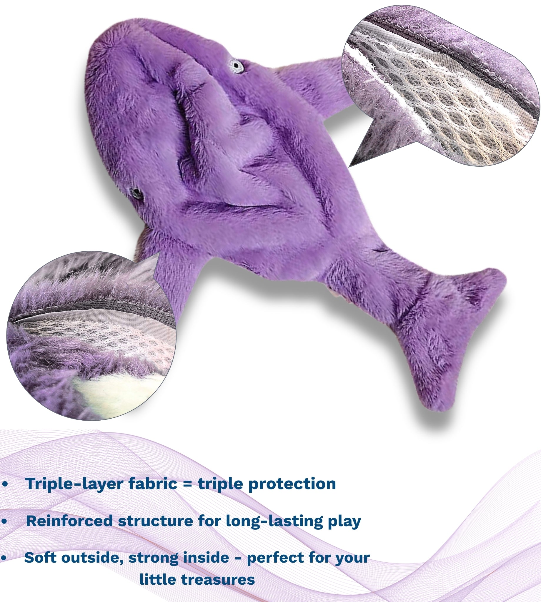 Meet the Ocean Duo, a dynamic pair of marine-themed dog toys designed for playful pups who love sound, texture, and tug-of-war—but not the stuffing cleanup. Featuring a whale and a dolphin, these vibrant, crinkle-filled companions are built to entertain without the fluff.