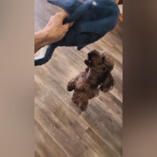 Meet the Ocean Duo, a dynamic pair of marine-themed dog toys designed for playful pups who love sound, texture, and tug-of-war—but not the stuffing cleanup. Featuring a whale and a dolphin, these vibrant, crinkle-filled companions are built to entertain without the fluff.